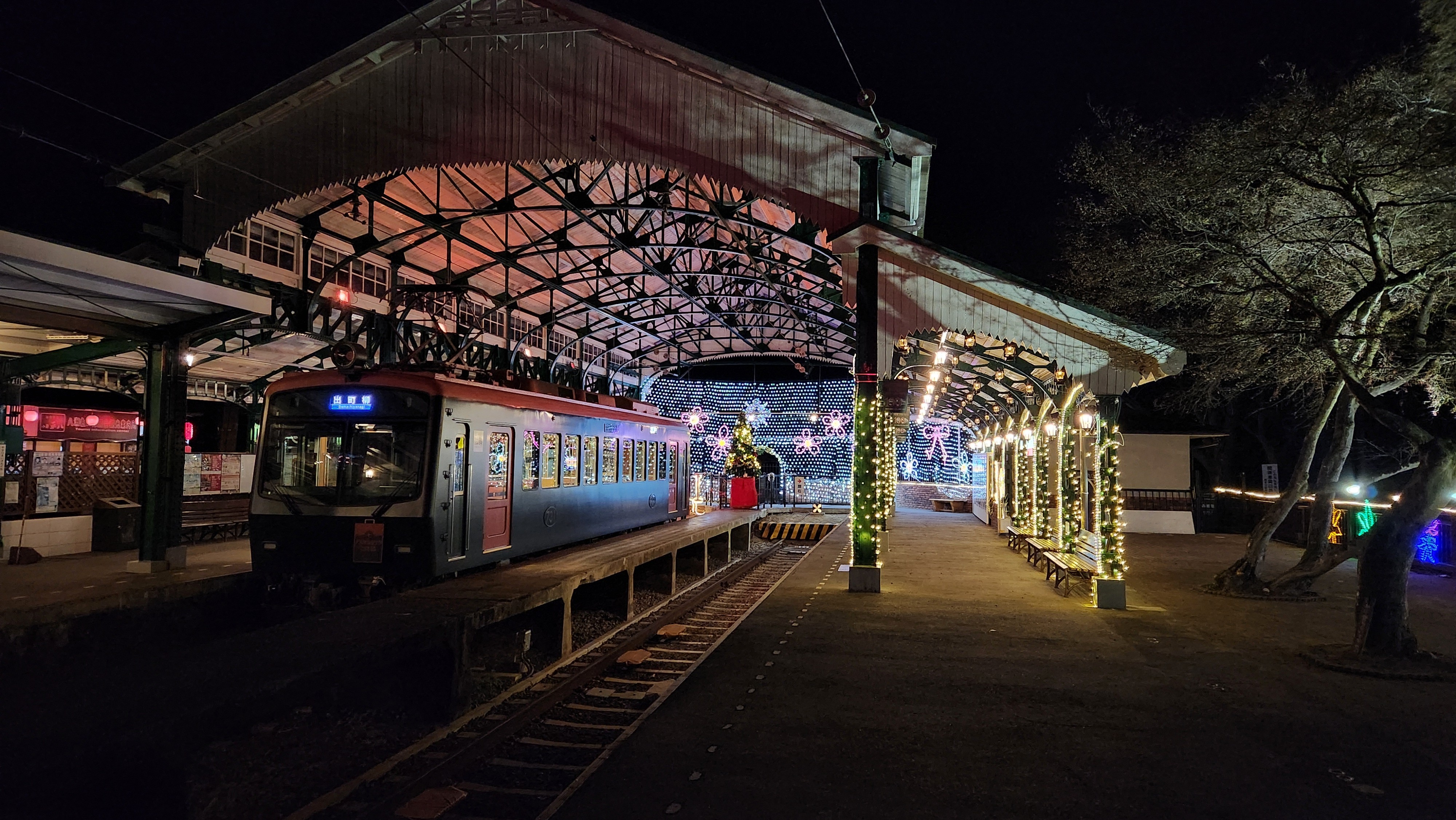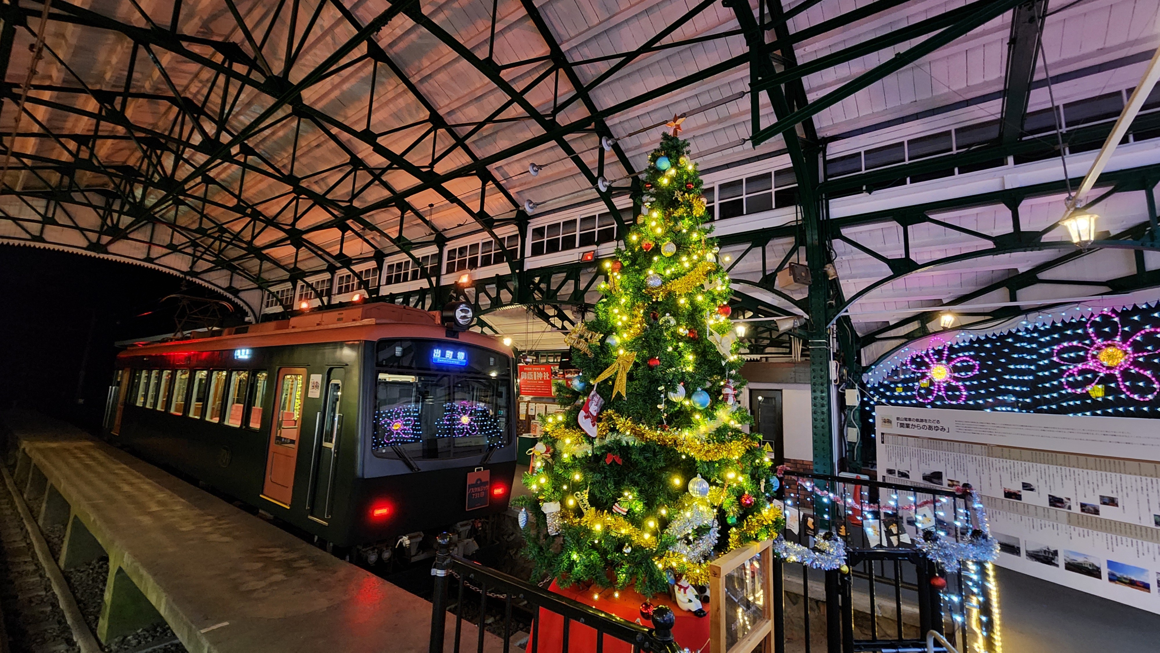 八瀬比叡山口駅の歴史ある駅舎をイルミネーションでかわいく装飾。